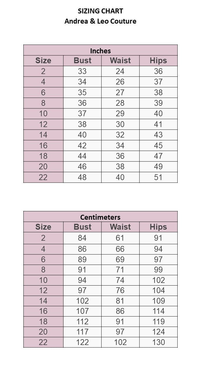 - Sizes: 4,6,8,10,12,14,16,18