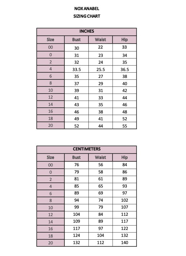 - Sizes: 00,0,2,4,6,8,10,12,14,16