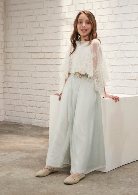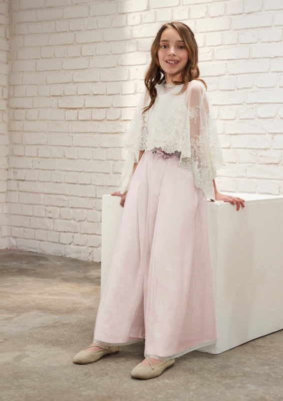 Tulle Communion Jumpsuit Amaya Albor with Cape 636032 Tulle Communion Jumpsuit Amaya Albor with Cape 636032