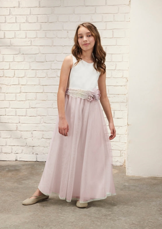 This Amaya 636032 jumpsuit offers elegance and comfort for her Communion, Confirmation, or as a second option after the ceremony. This elegant tulle communion jumpsuit by Amaya Albor combines modern sophistication with tim...